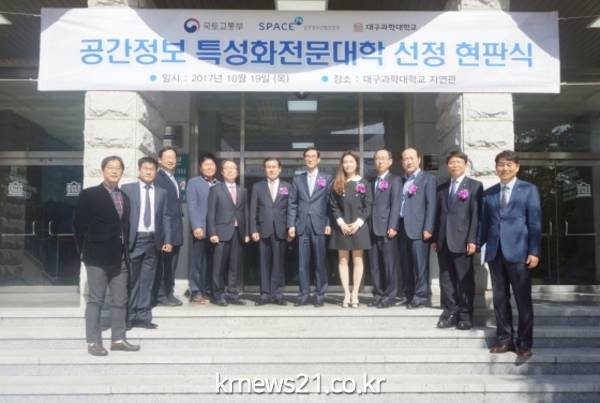 대구과학대는 19일 교내 자연관 1층 로비에서 '공간정보 특성화 전문대학' 현판식을 가졌다고 밝혔다.