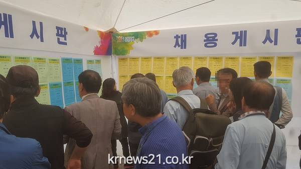 수원시가 지난 19일 수원역 남부광장에서 개최한 ‘제4회 민간 노인일자리 채용 한마당’에서 어르신 57명이 현장 취업에 성공했다.