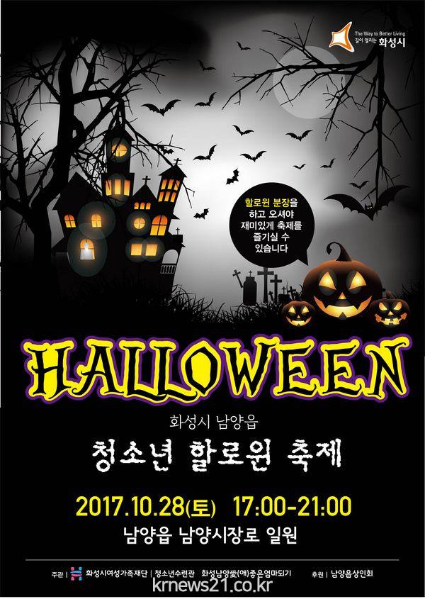할로윈 축제가 오는 10월 28일 토요일 17시부터 남양읍 시장로 일대에서 개최된다.