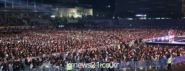21일 오후 7시부터 9시까지 두 시간동안 강진군이 국비를 따내 개최한 ‘강진 K-POP M 슈퍼콘서트’가 서울 수도권을 포함해 대전 등 충청권, 광주·전남권에서 몰려는 2만3천명의 팬들 환호 속에 성황리에 열렸다.