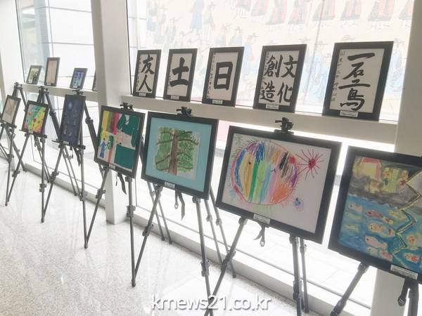 전시작품은 초중학생 회화 20점과 서예 작품 15점으로, ‘학교에서 본 풍경’, ‘자연 속에서 카레 만들기’, ‘이름 아트’, ‘상상의 새’ 등 초·중학생 시선으로 바라보고 경험한 일상생활에서부터 무한한 상상력이 담긴 다양한 주제의 작품으로 구성된다.
