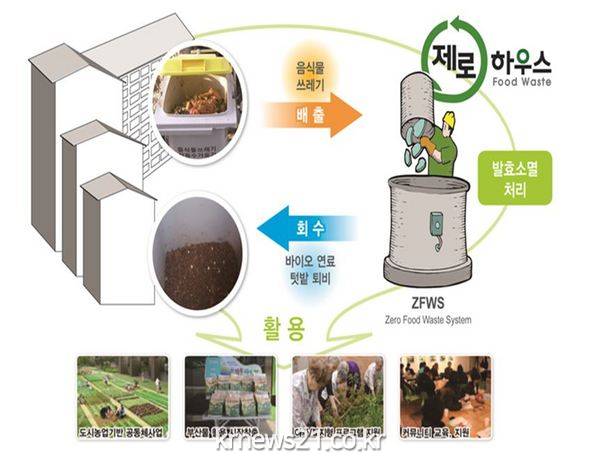 이들 가정은 발생되는 음식물쓰레기를 주방용 오물분쇄기를 이용해 100% 분쇄해 배출하고, 배출된 음식물쓰레기는 하수관로에 유입되기 전에 지하 공간에 모아서 고·액 분리(고형물 80% 회수)하는 작업을 거친다. 이때 발생하는 고형물은 음식물쓰레기 자원화 시설인 발효·소멸 과정을 거처 퇴비화해 단지 내 조경, 텃밭 등에 사용된다.