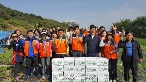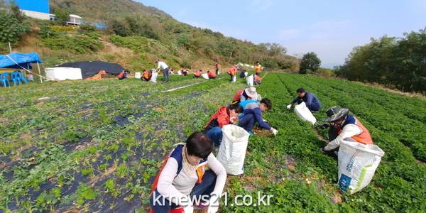 일손 지원을 받은 주포면 농가주는“일손이 부족해 걱정이 많았는데, 많은 분들이 오셔서 도움을 주셨고, 또 직접 채취한 농산물도 구매하셔서