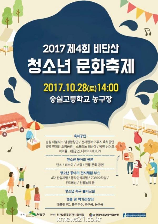 서울 은평구(구청장 김우영)는 오는 28일 숭실고등학교에서 ‘제4회 비단산 청소년 문화축제’를 개최한다.