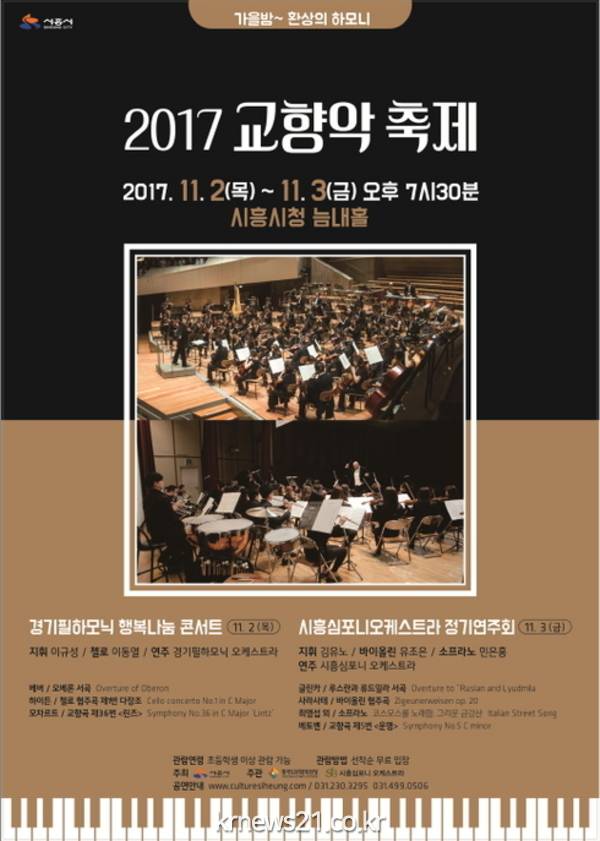 이번 교향악축제는 시흥시가 주최하고, 경기도문화의전당, 시흥심포니오케스트라가 주관하는 공연으로 다음달 2일과 3일 오후 7시30분 시흥시청 늠내홀에서 개최된다.
