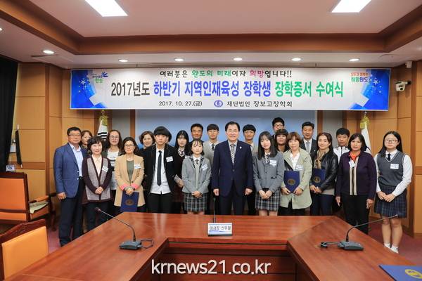 (재)장보고장학회는 27일 완도군 관내 출신 대학생과 중․고 학생들을 대상으로 선발한 31명에게 지역인재육성 장학금 2천8백8십만 원에 해당하는 장학증서를 수여했다.