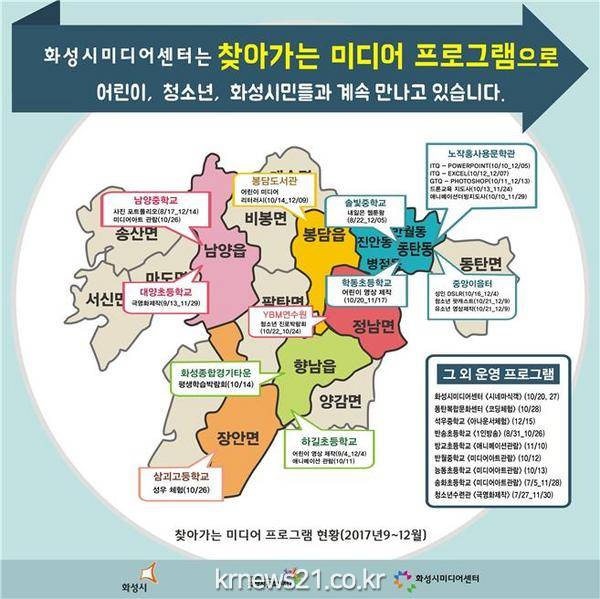 화성시 문화재단(대표 권영후)이 운영하는 화성시 미디어센터에서는 10월~12월 석 달 간 ‘찾아가는 미디어 문화 활동 지원 사업’을 시행한다.