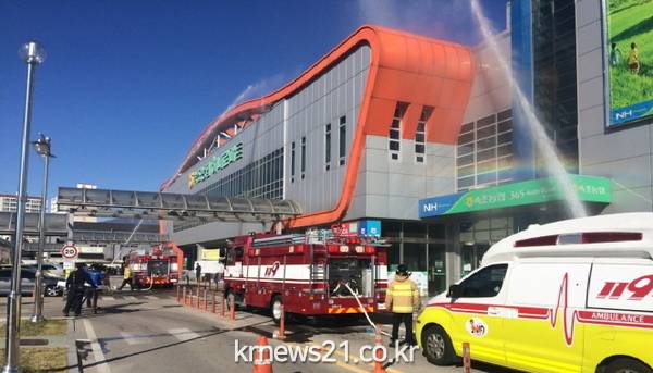 속초소방서(서장 정효수)는 31일 오전 10시 농협 하나로마트 엑스포점에서 가상 화재ㆍ현지적응훈련을 실시했다.
