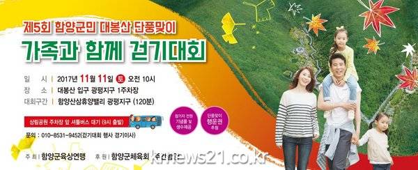 가을 단풍이 절정을 이루는 오는 11월 11일 함양군은 전 군민을 대상으로 주민 건강 증진을 위한 군민건강 걷기대회를 개최한다.