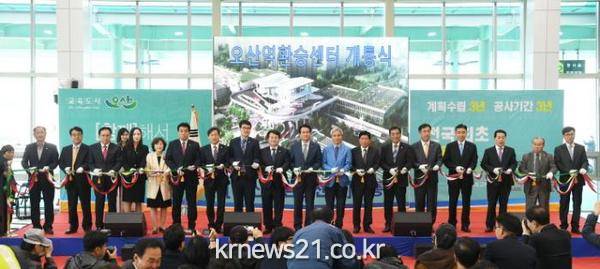 오산역 환승센터는 지난 2003년부터 시작된 오산터미널 재건축 사업이 시행사의 부도와 소송 등으로 10여 년간 장기간 표류하면서 시민들이 대중교통 이용에 큰 불편을 느끼게 되자 오산시에서 터미널 기능을 포함한 환승센터 건립사업을 직접 추진하게 되었다. 공사 중에는 기차와 전철이 달리는 선로 위에서 작업을 해야 하기 때문에 심야시간 한두 시간밖에 공사할 수 없었고, 선로 내 많은 지장물 때문에 공사가 더딜 수밖에 없었으나 이러한 극한 현장여건을 극복하고 오늘 개통식에 이르게 된 것이다.