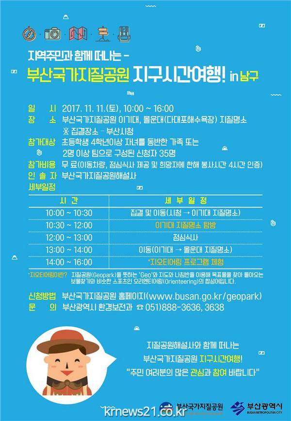부산시(시장 서병수)는 지역 학생과 주민들을 대상으로 지질공원을 탐방하는 '부산국가지질공원 지구시간여행' 행사를 개최한다.