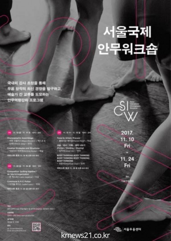 서울문화재단(대표이사 주철환) 서울무용센터는 제1회 <서울국제안무워크숍(Seoul International Choreography Workshop)>을 11월 10(금)부터 24(금)까지 서울무용센터에서 개최한다고 밝혔다.