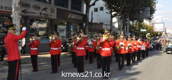 이후 참가자들은 부산시청앞에서 출발해 양정교차로를 거쳐 송상현광장까지 1.5km 구간에서 6·25전쟁에 참전한 21개국 국기를 들고 초대형 퍼레이드 행렬을 이어갔다.