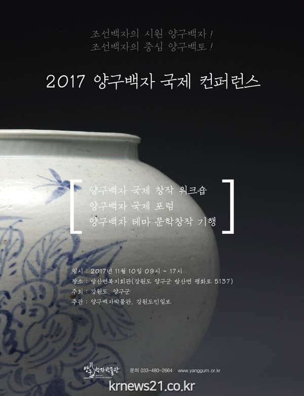 조선백자의 시원으로 잘 알려진 양구백자에 대한 국제 컨퍼런스와 국제 창작 워크숍이 오는 10일 강원 양구군 방산면복지회관에서 개최된다.