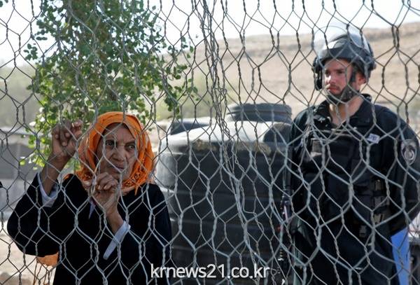 ▲ AFP / JAAFAR ASHTIYEH[제공자ⓒ 뉴스21통신. 무단전재-재배포 금지.]이스라엘 육군이 요르단 계곡 근처의 서안지구 마을에서 비인가 팔레스타인 주민 집을 철거하는 동안 한 팔레스타인 여성이 이를 지켜보고 있다.