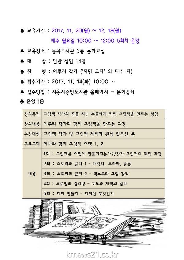 시흥시 능곡도서관은 오는 20일부터 <</span>이루리 작가의 그림책 워크숍>을 운영한다.