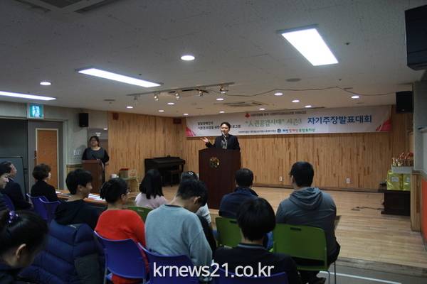 제천장애인종합복지관(관장 오재원)은 7일 제천장애인종합복지관 지하 강당에서 ‘人권공감시대 시즌3’ 기간 동안 발달장애인들이 갈고 닦은 실력을 발휘하기 위해 ‘자기권리 주장발표회’를 개최했다.