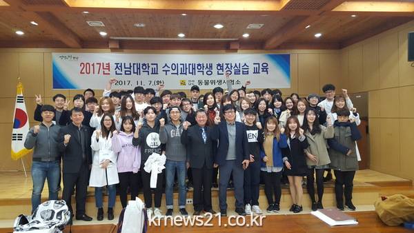 전라남도동물위생시험소는 전남대학교 수의과대학 본과 3학년 46명을 대상으로 주요 가축 전염병 및 축산물 안전성 검사 등 수의공중보건 분야 현장 교육을 실시했다고 8일 밝혔다.