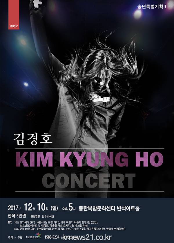올해로 데뷔 23주년을 맞은 베테랑 로커 김경호가 반석아트홀을 찾는다. 화성시 문화재단이 연말을 위해 기획한 송년 특별공연 중 하나인 이번 공연에서는 시원하게 내뿜는 에너지를 느낄 수 있는 김경호의 단독 무대를 만날 수 있다.