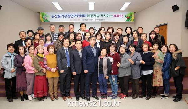 지난 7일 열린 수료식에서는 블랙베리 잼, 아로니아 양갱, 강황 찹쌀떡, 천년초 과립차 등 교육생들이 직접 만든 다양한 아이디어 상품이 전시됐으며, 조별 개발제품 발표 및 평가가 함께 진행됐다.