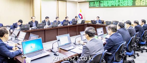 회의에서는 규제개혁 분야 12개 지표별 추진실적 점검과 노력이 필요한 부진지표에 대한 문제점 분석을 거쳐 실적제고 방안과 대안 제시 등으로 심도있게 진행됐다.