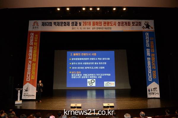 공주시(시장 오시덕)가 지난 15일 문예회관 대공연장에서 제63회 백제문화제 성과 및 2018 올해의 관광도시 성공개최를 위한 시민 보고회를 가졌다.