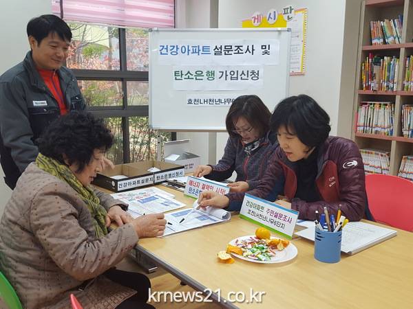 광주광역시 남구 효천LH천년나무 6단지 아파트(532세대)는 남구 건강아파트사업에 선정되어 입주민이 주체가 되어 스스로 건강문제를 파악하고 해결방안을 모색하는 주민참여형 건강증진사업을 펼치고 있다.