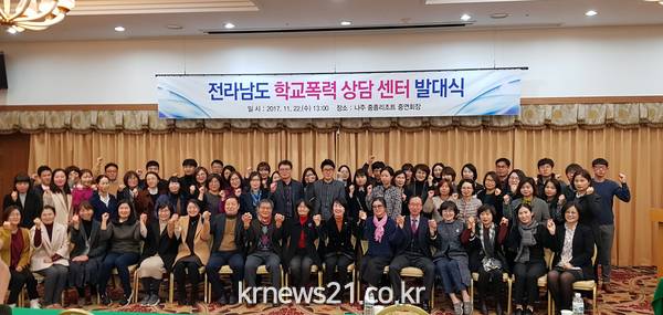 전라남도는 학교폭력 없는 안전하고 행복한 학교문화 조성을 위해 22일 나주 중흥리조트 대회의실에서 ‘전라남도 학교폭력 상담센터’ 설치 운영 발대식을 개최했다.