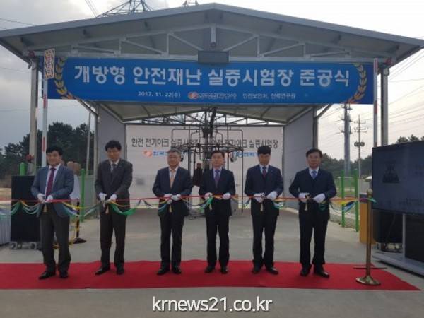 한국전력공사(사장 조환익)가 11월 22일 국내 최초로 안전장구 및 개인보호구에 대한 안전성능을 실증할 수 있는 ‘개방형 안전·재난 실증시험장’을 전력연구원 전력시험센터(전북 고창군 소재)에 구축하였다.