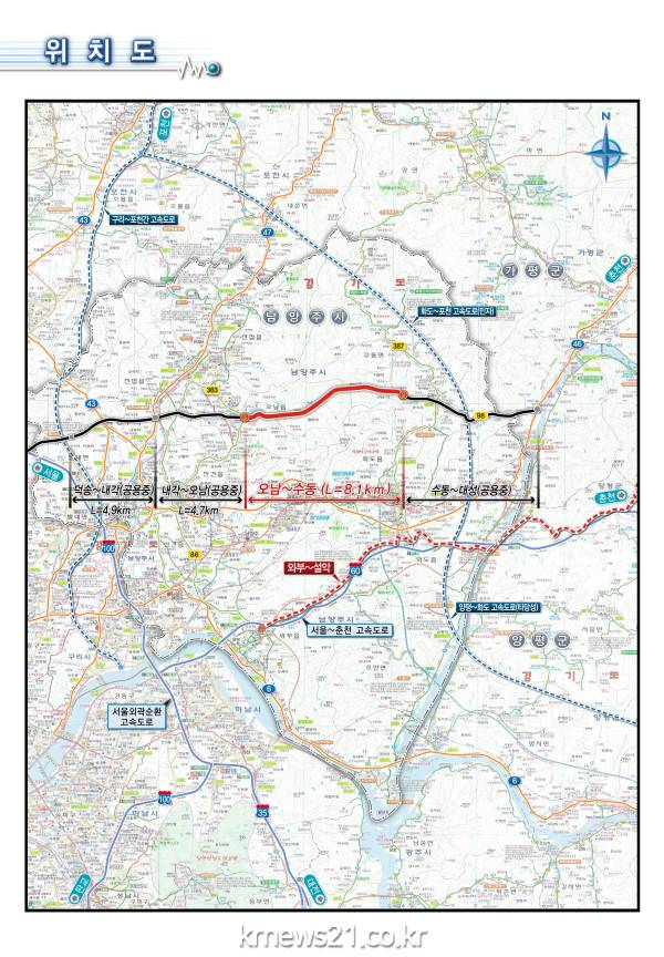 경기북부 5대 핵심도로이자 경기북부지역을 동서로 관통하는 국지도98호선 오남~수동 건설공사가 27일 착공한다.
