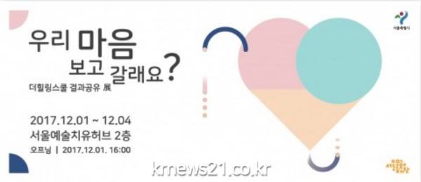 서울문화재단(대표이사 주철환) 서울예술치유허브는 예술로 치유가 필요한 위기계층을 직접 찾아가는 프로그램 <더힐링스쿨>의 결과작품 전시 ‘우리 마음 보고 갈래요?’를 12월 1일(금)부터 4일(월)까지 서울예술치유허브 2층 갤러리 맺음에서 개최한다.
