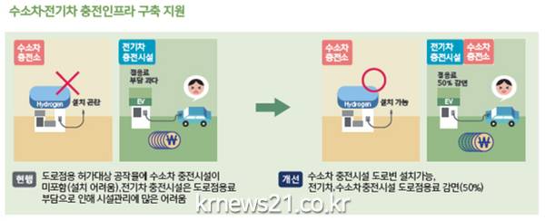 국토부는 미세먼지 저감과 친환경차 보급 활성화를 위해 전기차·수소차 등 친환경차 충전시설의 점용료를 각 50%씩 감면하기로 했다.
