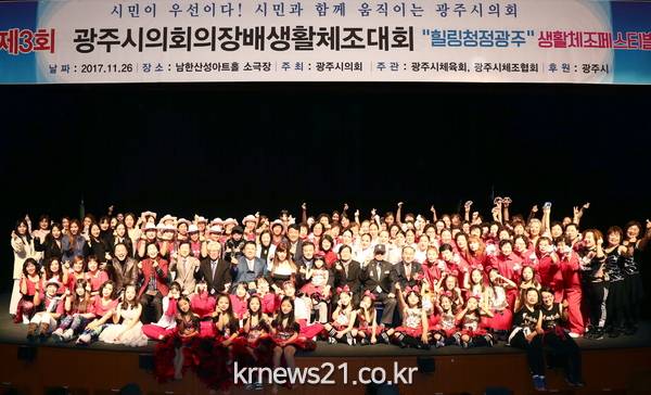 제3회 광주시의회 의장 배 생활체조대회가 지난 26일 남한산성아트홀 소극장에서 동호인과 관람객 500여명이 참석한 가운데 성대하게 개최됐다.