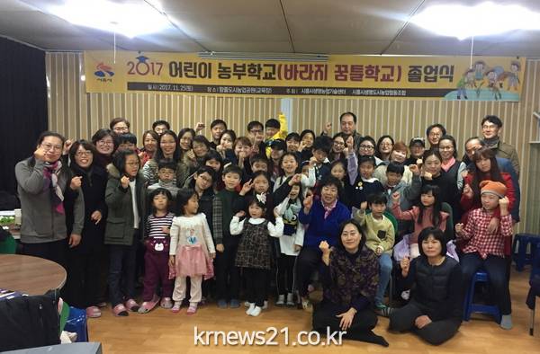 시흥시(시장 김윤식)는 텃밭수업 참여로 가족의 따뜻함과 생명농업의 소중함을 배우고 정서적 안정을 찾을 수 있었던 <2017 </span>어린이 농부학교> 졸업식을 11월 25일 함줄 도시농업공원 교육장에서 진행하였다.
