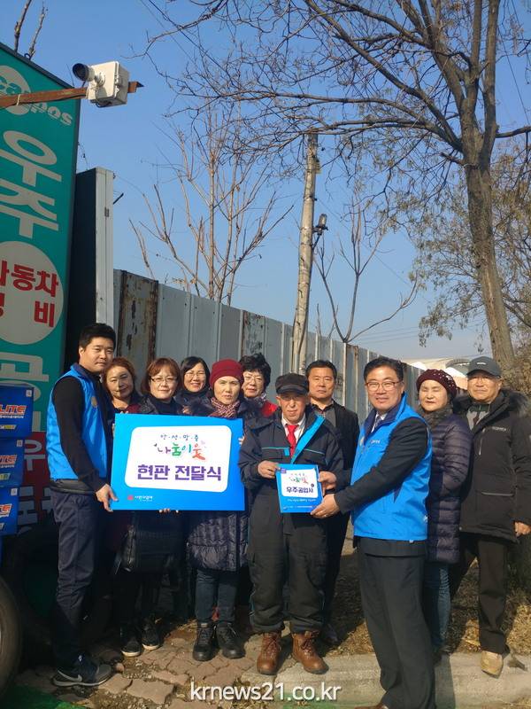 안성1동(동장 이진호) 지역사회보장협의체(민간위원장 이관형)는 29일 어려운 이웃을 위해 봉사함으로써 사랑을 실천하고 있는 우주공업사를 「안성맞춤 나눔 이웃」 안성1동 1호점으로 선정하고 현판식을 가졌다.