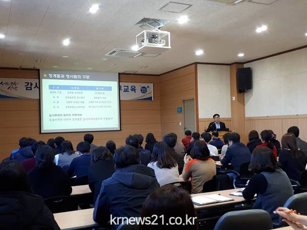 이번 교육은 신안군 감사공무원이 자체감사와 외부감사결과를 바탕으로 관련규정과 감사사례를 전달하고, 현재 시행하고 있는 업무의 자기성찰을 하게함으로써 “바른 행정의 길”을 찾기 위한 내용으로 진행되었다.