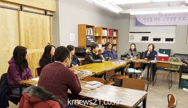 ‘수원청년 큐어’는 여러 가지 고민으로 힘겨워하는 청년들의 이야기를 들어주고 따뜻한 조언을 해줄 청년 고민상담사를 양성하는 프로그램이다. 지난 9월 12일부터 11월 23일까지 일주일에 두 번씩 10회 과정으로 심리상담, 미술치료 등에 관한 교육이 진행됐다.