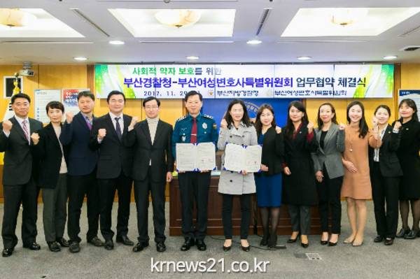 부산지방경찰청은 29일 부산경찰청 7층 동백홀에서 부산지방변호사회 산하 여성변호사특별위원회와 업무협약을 체결했다.