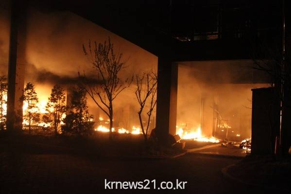 이 불로 주차장 천장과 벽면 불에 탔다. 2층 식당, 3층 체육관의 외벽 등 1400㎡가량이 그을렸다. 또 승용차 1대와 에어컨 실외기가 소실되는 등 소방서 추산 9800여만원의 재산 피해가 났다.