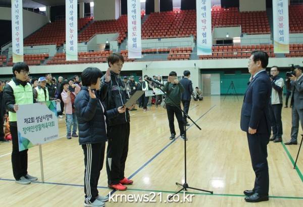 성남시장애인체육회(회장 이재명)가 주최하고 11개 종목의 가맹경기단체가 주관하는 이번 대회는 시각, 청각, 지체, 지적발달 장애인 548명이 선수로 뛴다.
