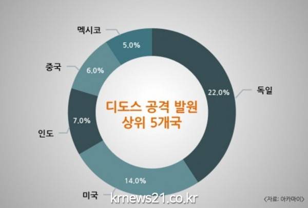 3분기 전세계 디도스 공격은 4376건 발생해 지난 분기 대비 8% 늘면서 2분기에 이어 증가세를 이어갔다. 디도스 공격의 타깃이 된 곳은 평균 36건의 공격을 받았다.