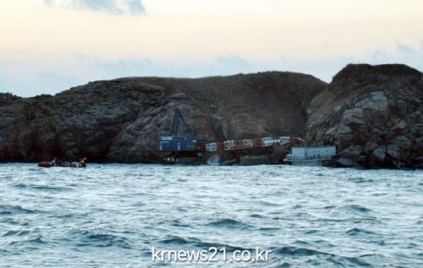 해경 관계자는 “고속단정으로는 접근이 어려워 아직 승선원들을 구조하지는 못했다”며 “승선원들은 구명조끼를 입고 섬으로 대피를 시도하고 있다”고 말했다.