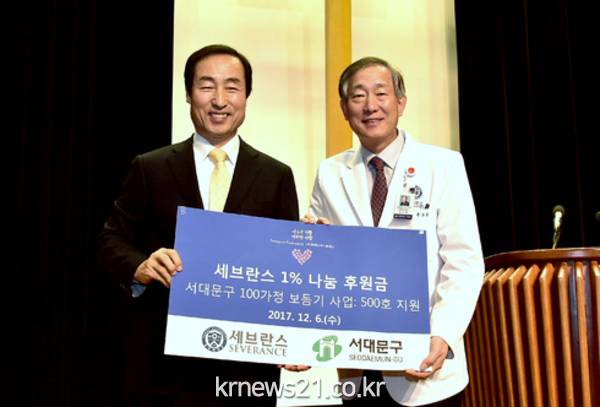구와 이날 ‘500호 결연식’을 가진 ‘연세대학교 의료원’은 교직원의 급여 1%를 경제적으로 어려운 환자와 지역사회 소외계층에 기부하는 ‘세브란스 1% 나눔 운동’ 10주년을 기념해 후원키로 했다.