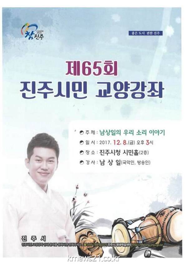 경남 진주시는 오는 8일 오후 3시 진주시청 시민홀에서 '제65회 진주시민 교양강좌'를 개최한다.