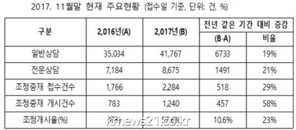 조정개시율은 2016년과 비교해 47%에서 57.6%로 10.6%p 증가했다.