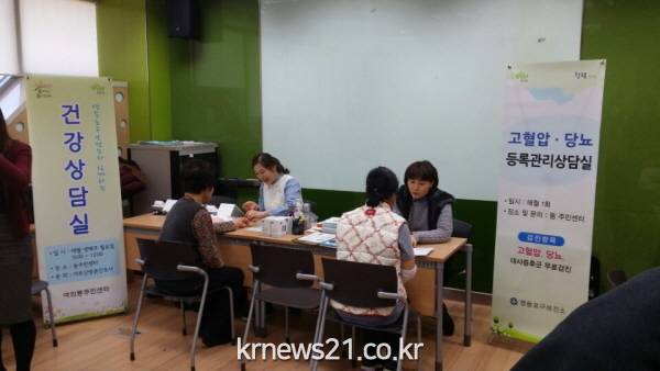 백세시대 주민건강요구에 부응하고 주민 건강서비스 접근성을 높이기 위해 매월 일정에 따라 18개 동 주민센터를 찾아가 정기적으로 고혈압․당뇨에 대한 무료검진을 받을 수 있도록 했다.