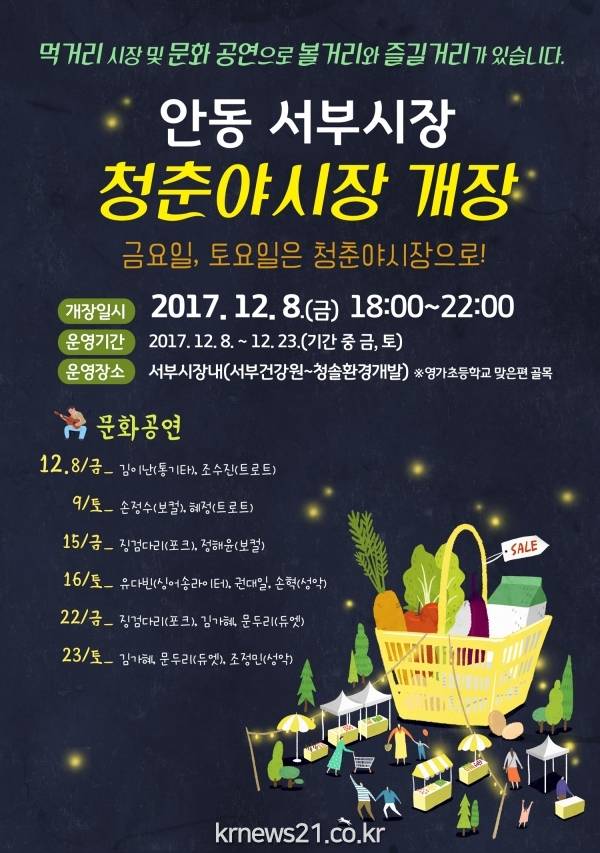 경북 안동시는 오는 8일부터 안동서부시장에 ‘청춘야시장’을 개장한다고 7일 밝혔다.
