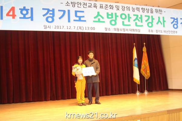 연구하는 분위기 조성을 통해 양질의 안전교육 교수기법 개발과 우수한 강사를 발굴ㆍ육성하기 위해 개최된 제4회 경기도 소방안전강사 경진대회에서 김포소방서 엄정숙 소방장이 강의분야에 참석하여 얻은 성과다.