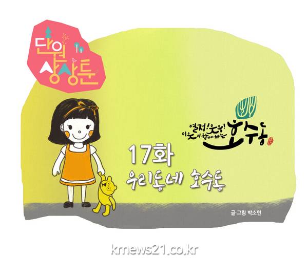 이번에 게시된 17화 ‘우리 동네 호수동’은 ‘열정! 웃음! 이웃이 함께하는 호수동’이라는 슬로건을 가지고 있는 호수동의 역사와 유래 및 자랑거리 등을 단원 상상 툰의 캐릭터인 단원이와 곰씨의 대화로 소개하여 호수동에 대한 친숙함을 더해 주었다.