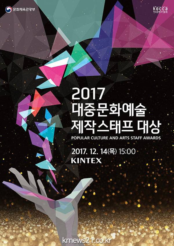 문화체육관광부는 오는 14일 경기도 일산 킨텍스 그랜드볼룸에서 '2017년 대중문화예술 제작스태프대상' 시상식을 개최한다.
